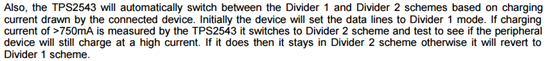 • 用TPS2543对IPAD充电,测量 D+/D–端口上的电压是2.0V/2.7V,只能输出1A充电电流,不能输出2A