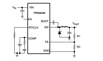 首先我们先来大概的了解一下TPS54340这个芯片,从下面典型的应用图中,我们可以看出这是一款典型的降压转换器,使用的方案应该就是我们最熟悉不过的BUCK了,不过不要小看这个BUCK,其内部使用的同步整流方案哦。也无怪乎其效率可以做到90%了。