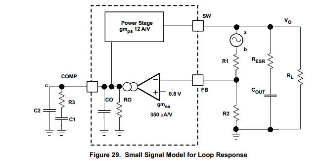 对于楼主关心的另外一个问题,通过对相关资料的学习,我们可以发现,这个是TPS54340内部重要的环路补偿部分,如下图所示,这个地方关系到整个系统的频率响应以及动态响应相关的参数,十分重要,需要慎重去调节。