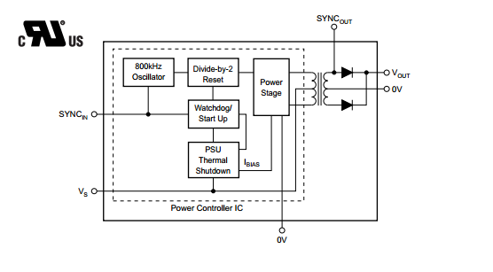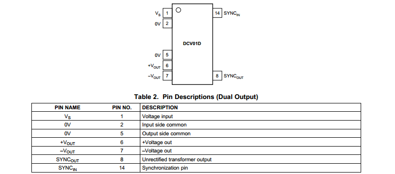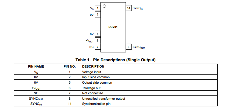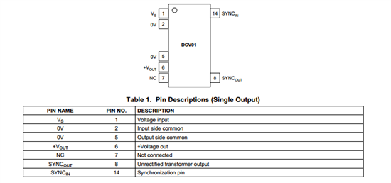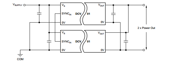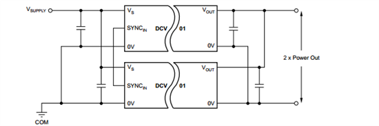 如果从一个DCV01的输出功率是不够的,所以能够并联多个DCV01s的输出,在SYNCIN功能可以轻松同步,以防止电源摆幅跳动频率,无需额外滤波的成本。
