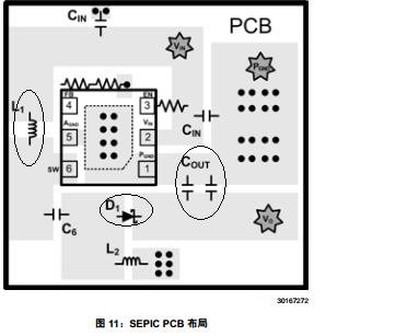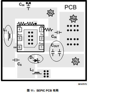 最后还有一个容易被大家忽视的问题,就是PCB的布局,由于启动的时候,开关噪声比较大,如果PCB布局不好,就容易错误的触发保护,这一点,大家可以参考TI推荐的PCB布局,如下图所示,注意功率电感,输出输出电容的位置。