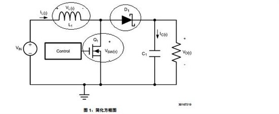 从上图中,我们可以注意到,LMR62421是一款基于boost拓扑的升压电路,其内部集成控制MOSFET,输入电压的范围为:2.7V-5.5V,输出电压的范围高达2.1A,可以说输出功率还是比较大的。我们注意一下,上图中圆圈中的三个部分,就分别是功率电感L,boost二极管D,以及LMR62421的以及开关节点SW,其内部集成了LMR62421的控制MOSFET,简化方框图如下所示: