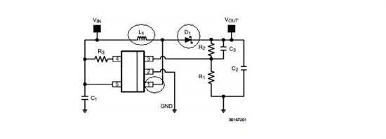 从上图我们可以看到,LMR62421有两种封装,一种就是我们最熟悉的SOT23封装了,及其的简洁。另外一种就是6脚的LLP封装了。在这里需要提一下LMR62421的重要工作原理,如下图所示,是典LMR62421型的应用电路图: