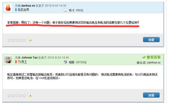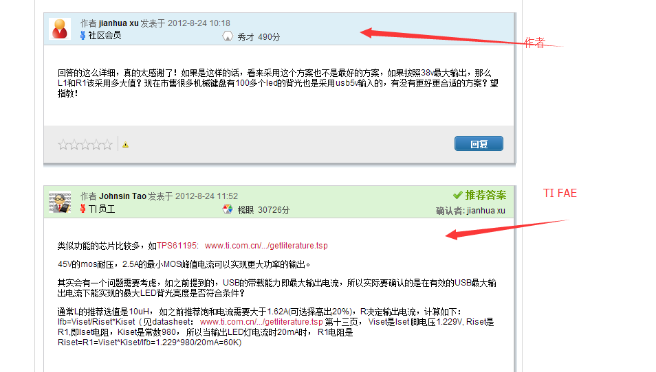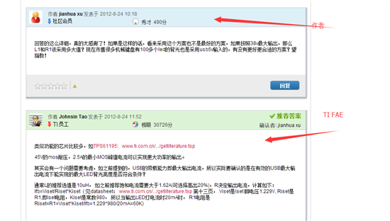 其中在这个帖子中解答问题的TI FAE有: Trevor、 Johnsin Tao