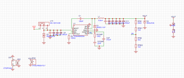 电路借助芯片官网的在线仿真webench确认一下,特别注意输出电容大小和ESR, 这个决定了补偿电路。
