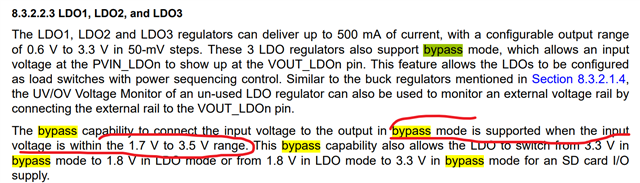 1,demo板使用3.3V输入,LDO_1 EVM为bypass。 如果我们采用5V输入,这一路还是bypass,该如何处理这一路而不影响其他路的正常输出呢?