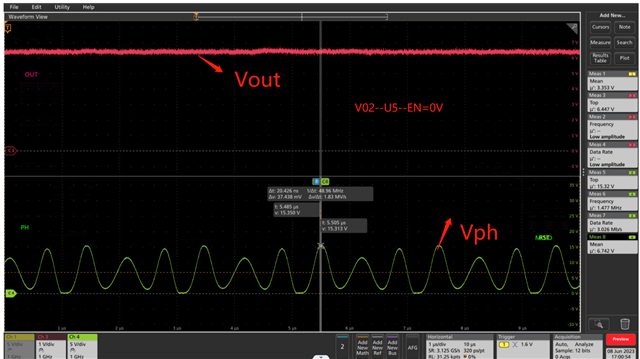使用TPS5430做了12V转5V的电路设计,目前EN高电平时,芯片可以正常输出5V电压。EN低电平时,却关闭不了。