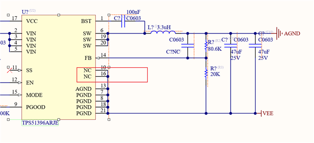 您好 TPS51396 做负压,10、16 是接GND 和是接VEE?
