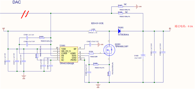 24V输出300V电压,电路如图1,R1027 1.6K,R1028 680K 画红色斜杠处不接,测试输出电压如图所示2,第二通道是输出300V电压波形,第一通道是SS的波形,板卡有20多块,测试出来4块不正常,请问哪里出了问题呢?请帮忙解答谢谢