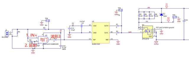 1. LMG1020 评估板上讲 这个窄脉冲是由IN+ 和RC延时电路进入与门后产生的,但是我没看明白这个OUT端的波形是怎么形成的?