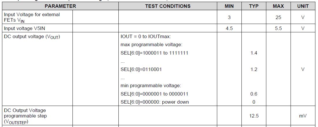 1、用户手册中第83页,寄存器VDDCRTL_OP_REG设置说明:VOUT=(SEL[6:0]*12.5mV+0.5625V),此处0.5625V是固定设置吗?还是与外部高端电压12V有关?