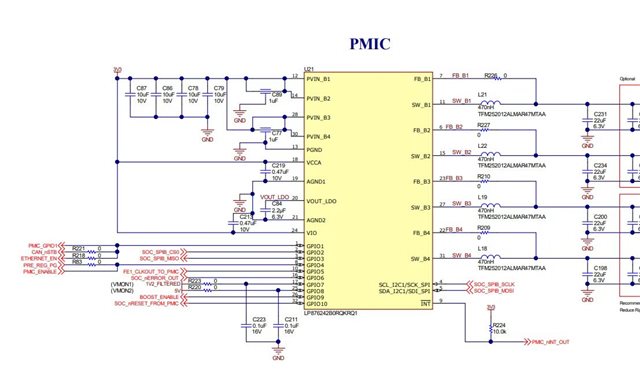 问题:电源管理PMIC LP876242B0RQKRQ1无输出电压;1、电路为官方设计,无任何更改;2、输入电压3.3V正常;3、PMIC_ENABLE引脚正常;4、4路buck均无输出;5、VOUT_LDO引脚1.8V