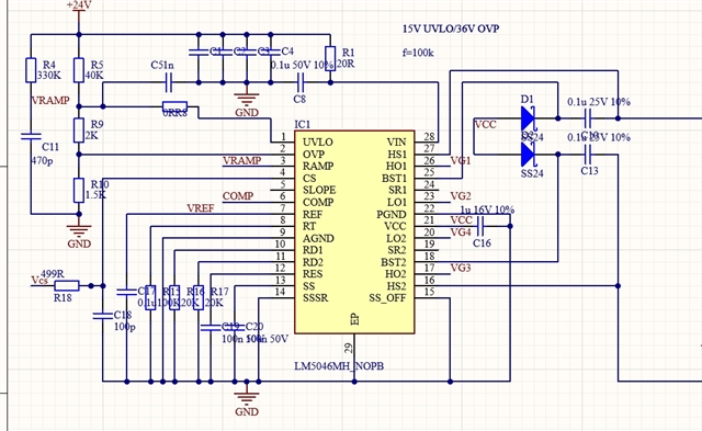 如上图所示,想通过RT直接串电阻方式,产生时钟频率,然后ramp引脚通过电压前馈方式,产生锯齿波。通过控制流入comp的电流,来控制移相比。发现电路如上图,不能工作。具体表现为没有驱动输出,ramp没有锯齿波电压*(有个恒的输入电压,怀疑芯片损坏);想通过slope引脚串电阻,来证明RT有产生时钟,发现slope引脚处也没锯齿波电压。