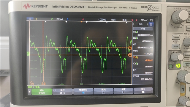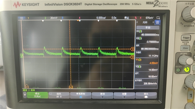 根据官方原理和布局做的5V3A电路,实测输出电容两端纹波异常,不是标准的三角波,为什么?(此前用过5420做的5V2A和5430做的12V1A都没问题)另外,这样的设计可以通过ClassB的EMI测试吗?