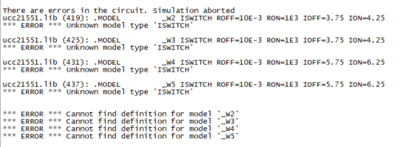 UCC21551-Q1 Pspice model downloaded from TI website is separated to several parts in library after I install it to simetrix, and when I do simulation below errors occurred, how to use this model in simetrix?