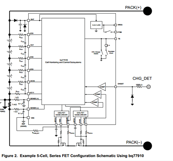 从这个案子中我根据相关的芯片,在TI的官方网站上找到了相关的资料,在这里(www.ti.com.cn/.../BQ77910),我找到了相关的User's guide,通过自己的研究发现德州仪器 (TI) BQ77910是一款非常优秀的电源管理芯片,在具体应用中,最新BQ77910两端口激活电路供参考: