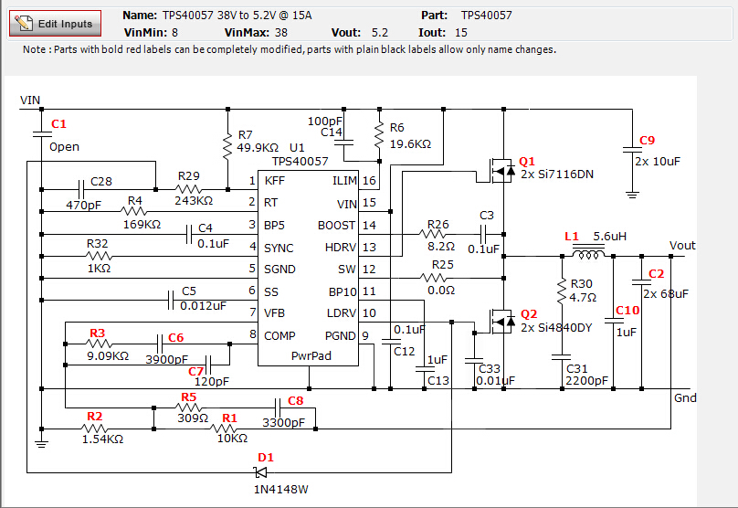 申请mos CSD18504Q5A 回来 上下两颗都换成该mos,经测试 芯片功耗已降下来,mos热量也稍降。但发现新问题,大负载时,9.5V以下,起不来! 若调节RFF使启动电压变小,那么当输入电压20v以上,输出电压会被拉低 。现 RT=200K RFF=68k