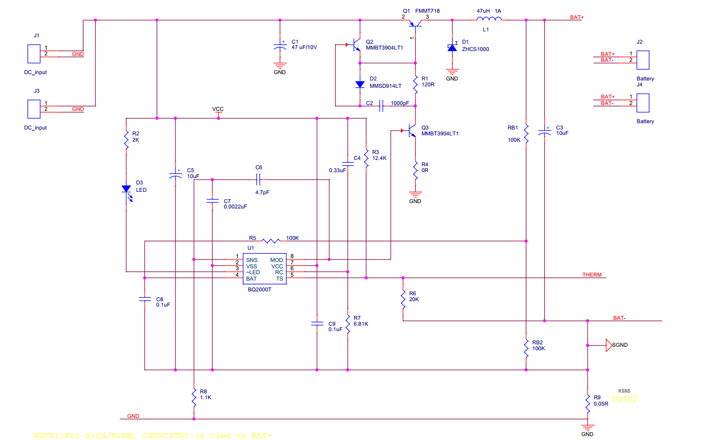 各位大牛,我目前使用bq2000t给双节镍氢电池充电,但是目前出现不能充电,充电电流基本为0。