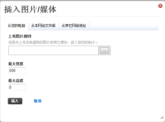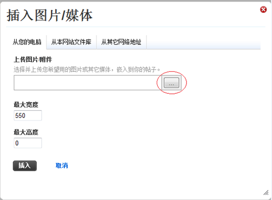 选择图片,点击插入,提示“请从您的电脑上传图片”,无解啊,是不是级别不够。