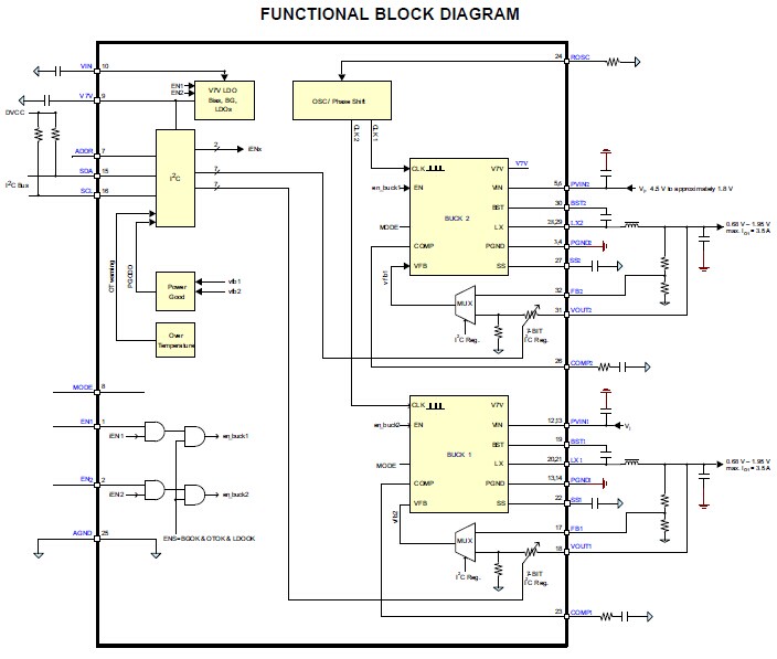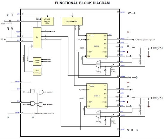我们来看下该芯片的原理框图,是具有7Bit编辑寄存器,用于VID调节功能。