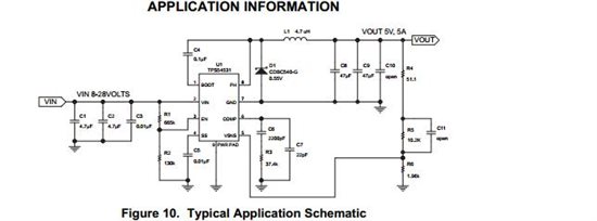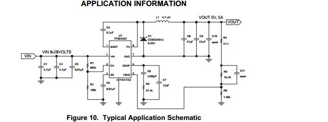 下面我们再看看TPS54531 的典型的应用电路图,如下所示: