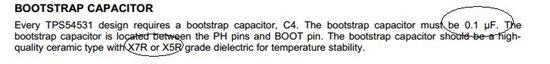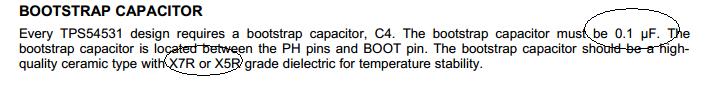 关于BOOT电容的选择,这个是给上管提供能量的,尤为重要,如下图所示,最好是0.1uF,X7R的高频陶瓷电容: