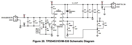 下面我们来看看TPS54531的具体应用电路,如下图所示: