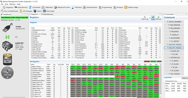 第一次使用BQ28z610R1芯片,设置DSG MOS没有打开。点击Commands,DSG_FET_TOGGLE没有作用。点击CSG_FET_TOGGLE可以正常打开MOS。请问一下需要怎么解决?首次使用功能还在熟悉中。使用开发板上的BQ28Z610是可以正常使用的。谢谢!