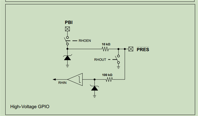 看了4050的规格书,press or shutdn引脚是否与PBI连接,是否有内部上拉,那它的上拉电压是如何确定?