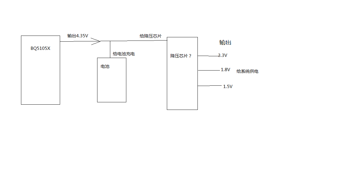 如图,我的系统打算用无线充电的方式,无线接收芯片BQ5105X的输出电压时4.35V, 它给电池充电,充电时也可通过降压芯片给系统供电,不充电时,电池通过降压芯片给系统供电,系统需要有三路输入分别是3.3v、1.8v、1.2v,我现在想在TI选一款芯片,请问你能给我一些建议吗?