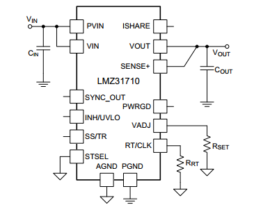 LMZ31710 SIMPLE SWITCHER 电源模块是一款易于使用的集成式电源解决方案,此解决方案在一个半高的 QFN 封装内组合了一个带有功率金属氧化物半导体场效应晶体管 (MOSFET) 的 10A DC/DC 转换器、一个屏蔽电感器以及无源元件。 这个整体电源解决方案仅需三个外部元件,并免除了环路补偿和磁性部件选择过程。