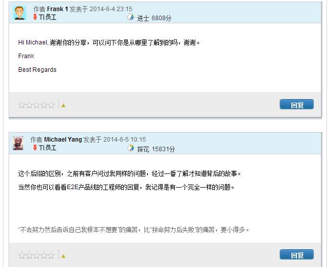 在此,还有TI FAE的对话,应该算是同事之间的一种学习吧: