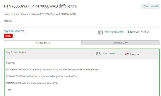 2006年PTN78060WAH有其组件变更为铅(Pb)分类。