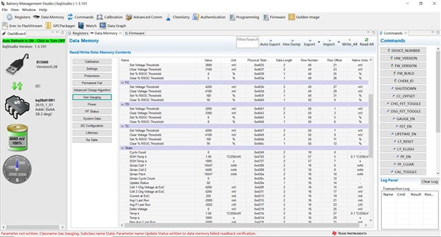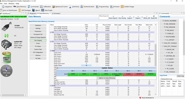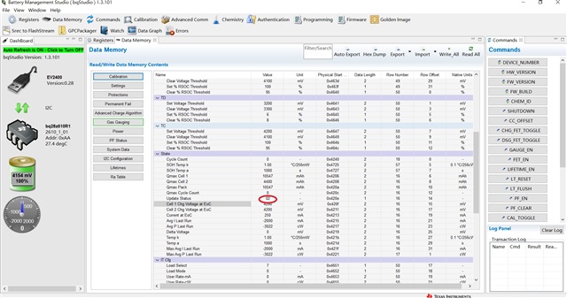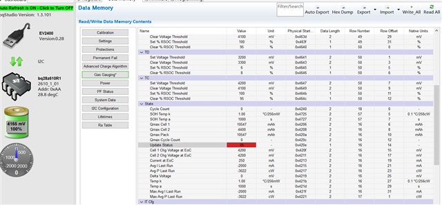在导出GG文件用记事本打开修改Cycle Count = 0, Qmax Cycle Count = 0,Update Status = 02后,重新导入点击LIFETIME_EN导出SREC。烧录程序进入读取Update Status = 06,电量显示100%没有正常工作。请问一下这是在那个步骤出错了导致工作不正常?谢谢!