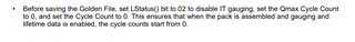 It is recommended to change the Update Status to 02 after the learning cycle and the only way this can be done is if IT (Gauge_EN = 0) is disabled. Disabling Gauge_EN should automatically change Update Status to 02.