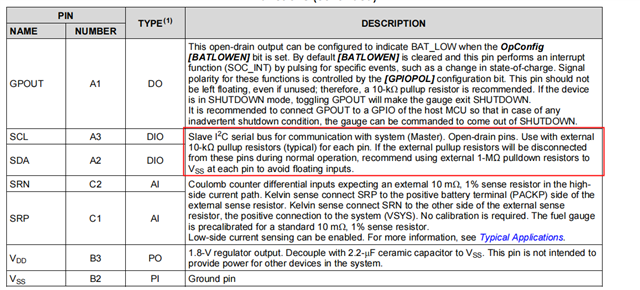 BQ27426 规格书中SCL和SDA PIN定义中描述,需要增加1M下拉电阻防止悬空。想请问,是否必须增加下拉1M电阻,如果不增加会有什么问题?