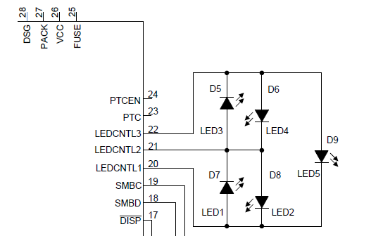 现在我这边在使用BQ4050LED电量显示时遇到了一个问题,在一个项目中,我需要使用4LED来做电量指示。LED1~LED4分别对应25%~100%,在电池包电量没有充满之前LED的显示都是正常的。在SOC到达100%后,LED2LED4会进行闪烁,LED1LED3是正常显示的。我看官方手册中的描述是支持4 LED.不知道这个问题是否有什么好的解决办法 ?