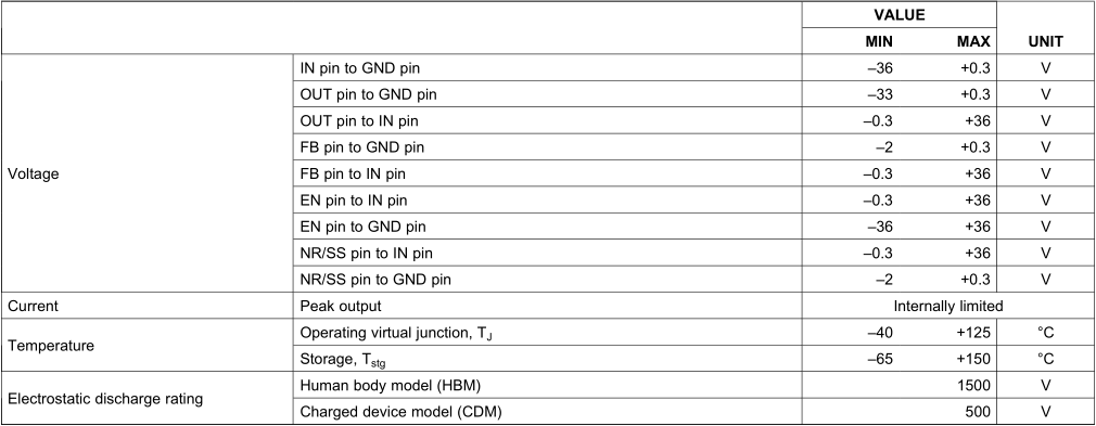 绝对最大额定值如图所示: