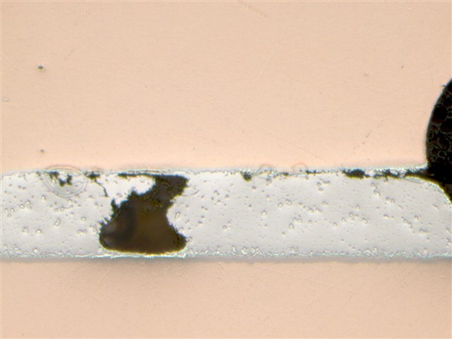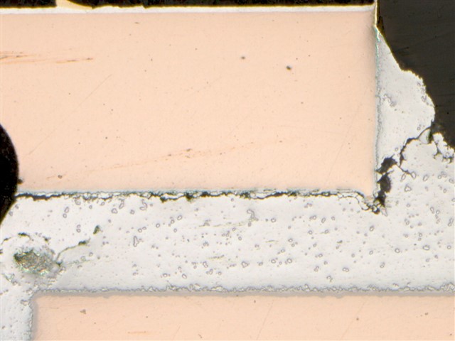 我们公司的电源模块使用了贵司LM5101ASDX/NOPB 的Drive, 产品在做TCT温循(-45~125度,每小时循环一次)700个循环时发生失效,FA分析定位不良位置都是在Drive 上面,我们对不良品做了一些切片,发现都是焊点开裂,而且开裂的位置都是靠近元器件本体的焊接层,需要贵司帮忙分析一下失效原因,我们的电源模块PCB 厚度是3.8mm, 层数是18层,附上的是一些切片图片,有任何回复请帮忙反馈给 lillian.li073@murata.com ,谢谢!