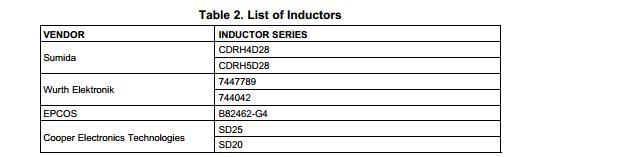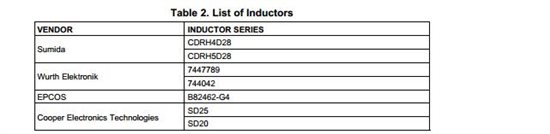 关于功率电感的选择,我们也可以直接使用TI推荐的电感,如下图所示:
