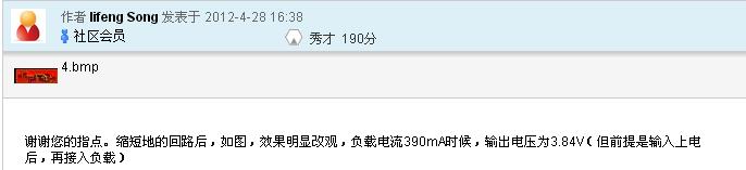 很明显楼主的设计原理图是没有问题的,那么输入输出参数是怎么样的呢?我们一起看看:输入电压2~3V,上面的结果是在3V输入时候测试的,带载时候输入电压正常,未被拉低。