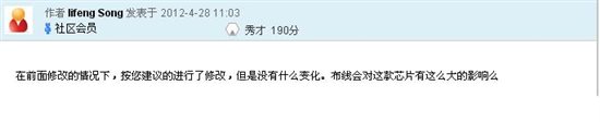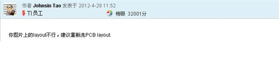 按照上述更改后,楼主的回复如下所示:在前面修改的情况下,按您建议的进行了修改,但是没有什么变化。布线会对这款芯片有这么大的影响么?