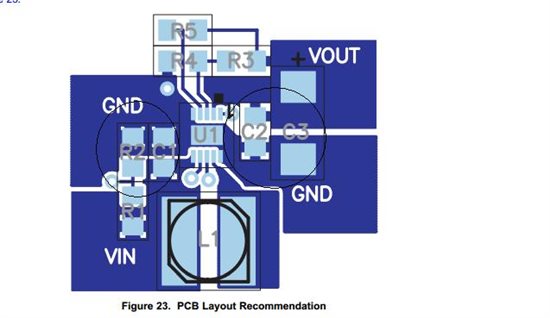 最后也是很重要的地方,也就是PCB布局方面了,我们可以参考TI推荐的方案,如下图所示: