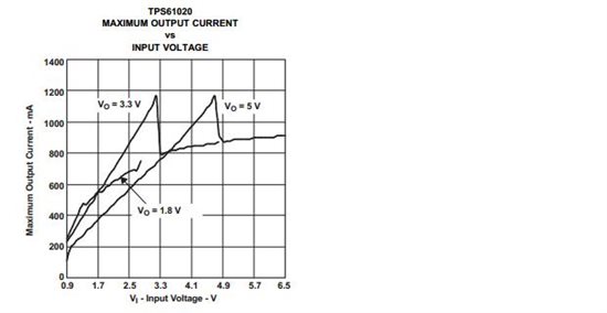 首先我们必须充分了解TPS61028的输入电压,输出电压,以及负载的相关曲线,在合理的范围内使用,如下图所示: