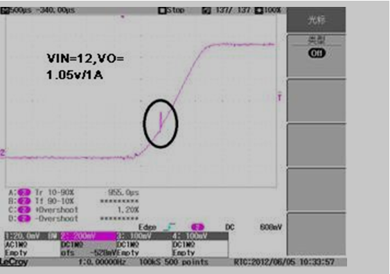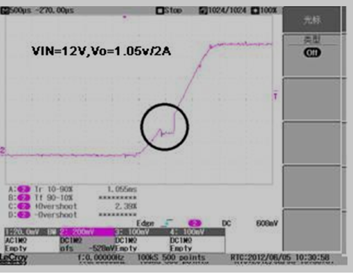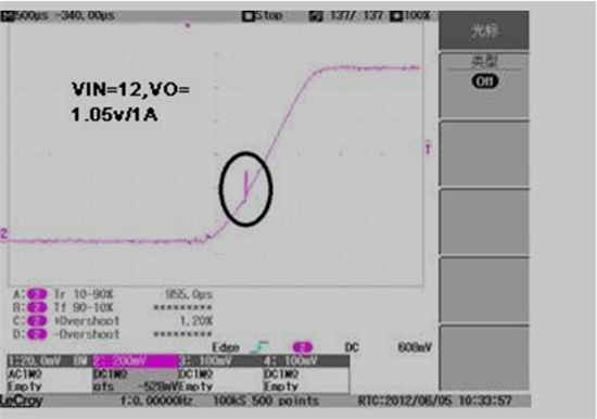 When test TPS54229 EVM found there is big spike or ripple voltage during startup, but there is no similar issue refer to TPS54229 EVM user guide, would you help clarify the reason and help solve the issue?