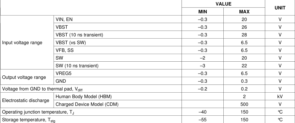 Absolute maximum rayings as shown below: