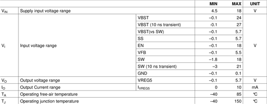 Recommended operating conditions as shown below: