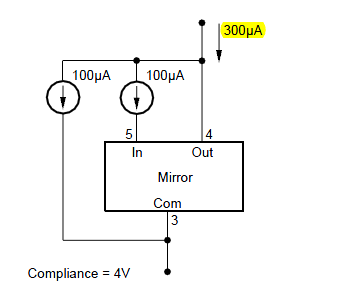 当我想用mirror反射使mirror in/out端都流过100uA的电流时候,mirror in端的电压就是A点这么高,同时mirror out端的电压不能超过B点。