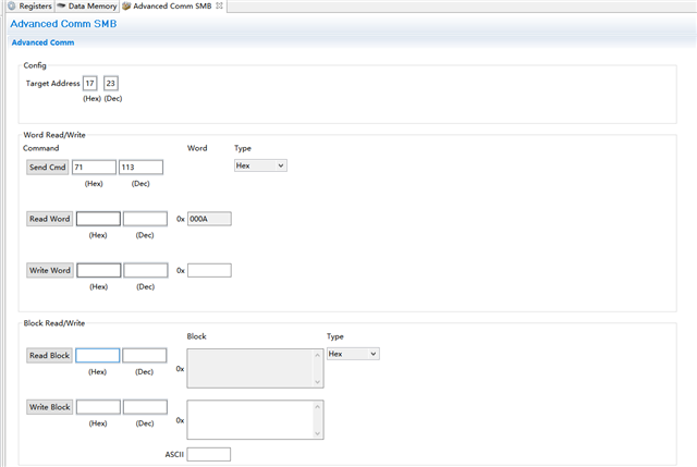 commands 命令有限, Use the advanced comm SMB for commands that do not have a button or register display.