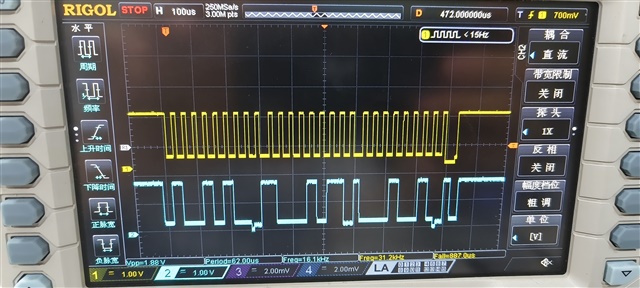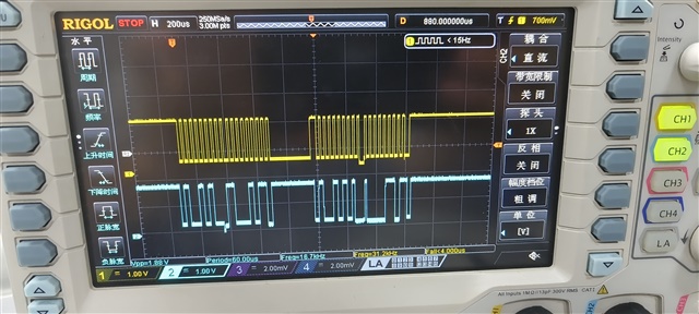 这是我用示波器抓取到的写入的时序图,它与我要写入的数据是一致的(设备地址是0x4A,寄存器地址是0x8B,数据是0x12)。起始信号、方向位、应答信号和停止信号都满足IIC通信协议。